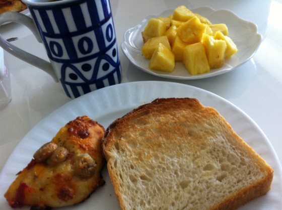 △ メゾンカイザーのパン2種とパイナップル。昨日と同じ構成。そろそろパンを買いに行かないと。