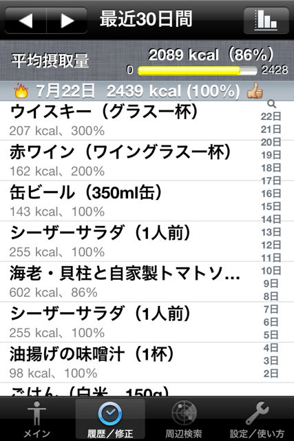 △2,439kcal。ちゃんとランニングした日は今まで運動分を入力していたのだが、それだとカロリーが低すぎるので入力を止めてみた。 だいたいぴったり制限値どおり。