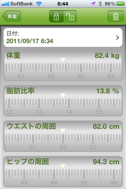 フォトリーディングセミナーは脳を酷使するだろうと思い、とにかくしっかり眠って集中できるよう準備。おかげで体調は戻り、元気に参加できた。脳を普段と違う使い方をしたせいか、夜はぐったり。心地良い疲れだ。体重 & 体脂肪 & ウエスト(9月の目標: 80.0kg,体脂肪11.0%、ウエスト81cm)