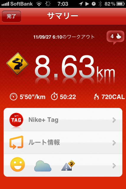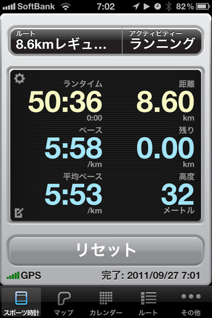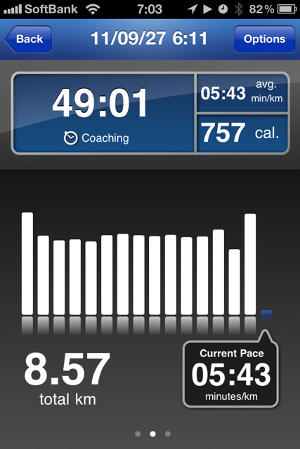 △ 今日も8.6kmのレギュラーコース。これくらいの距離だとスピードを出して走れるので、脚力強化にいいみたい。