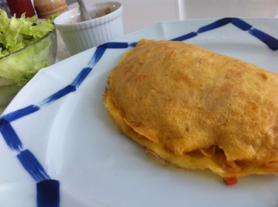 △ 前の晩に奥さんが作ってくれていたオムライス、それにサラダ。