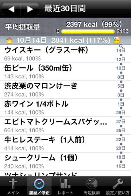 △ 2,841kcal。朝と昼のサンドイッチが意外にもヘビーだった。