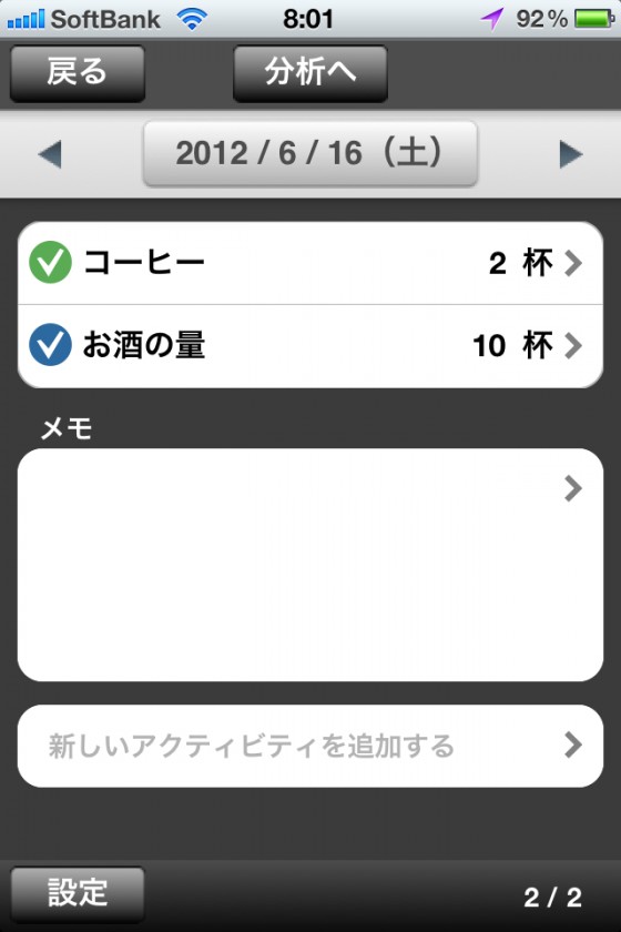 コーヒー2、ビール1、ワイン8、ホッピー2