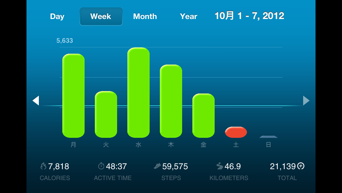 先週50km走って今週60kmに目標をアップしたのだが、残念ながら8km届かず。