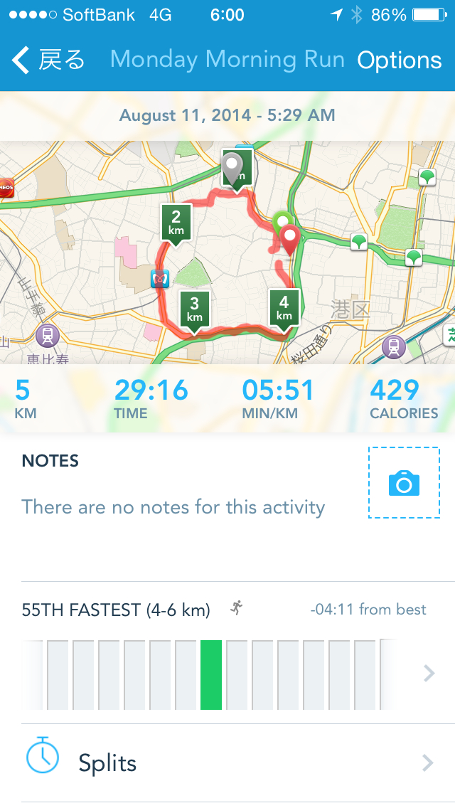 最初は身体が重かったが、途中からするするとペースが上がり、いい感じで走り終えられた。