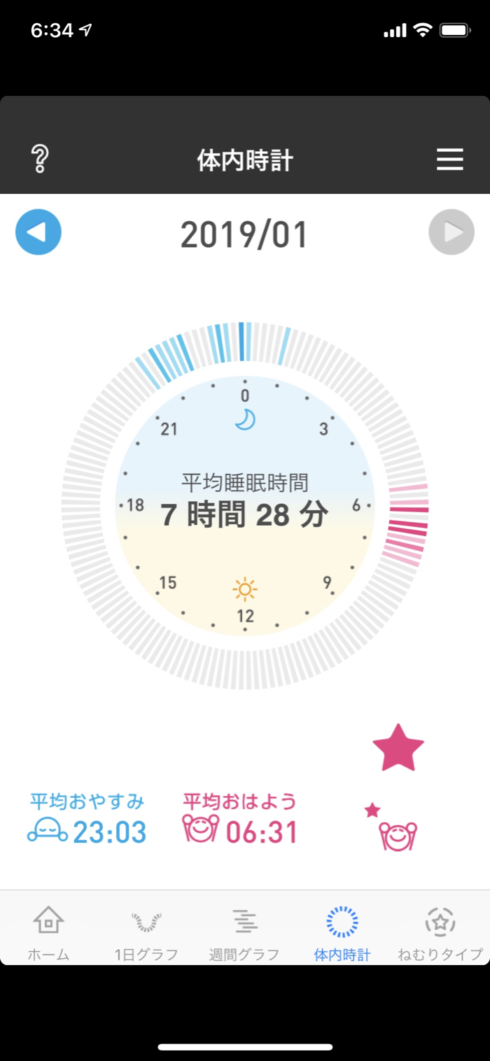 1月は月間平均7時間30分睡眠と、平均おやすみ時刻を22:30にすることが目標。