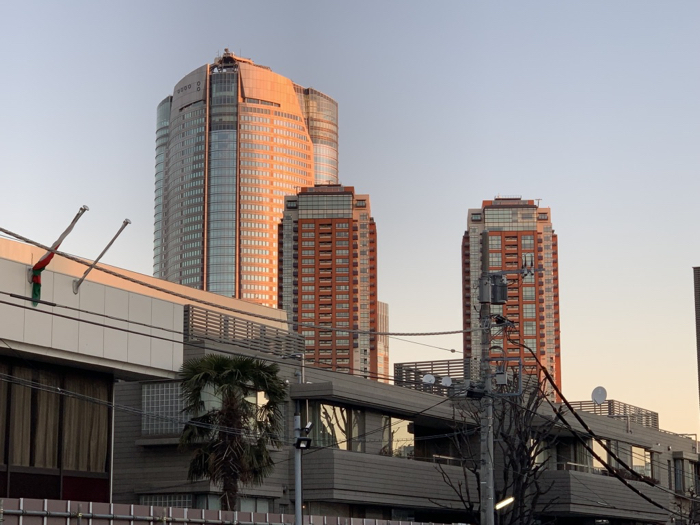 ▲ 六本木ヒルズが朝日を浴びて輝いている。
