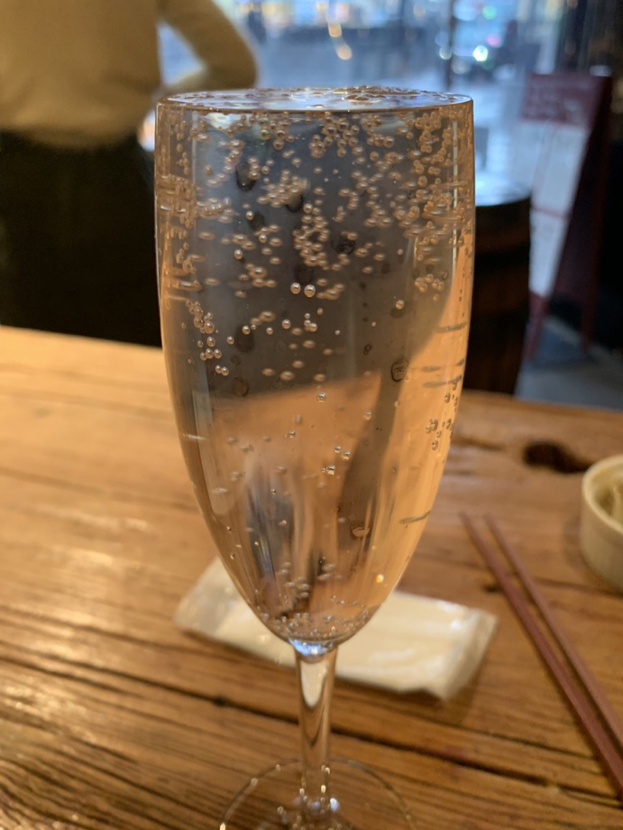 ▲ 入店したら、店員さんが何も言わずになみなみスパークリングを出してくれた(笑)。