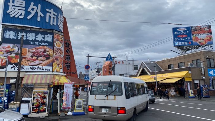 ▲ 地下鉄東西線で二十四軒駅に出て、そこから10分ほど歩くと札幌の市場に出る。