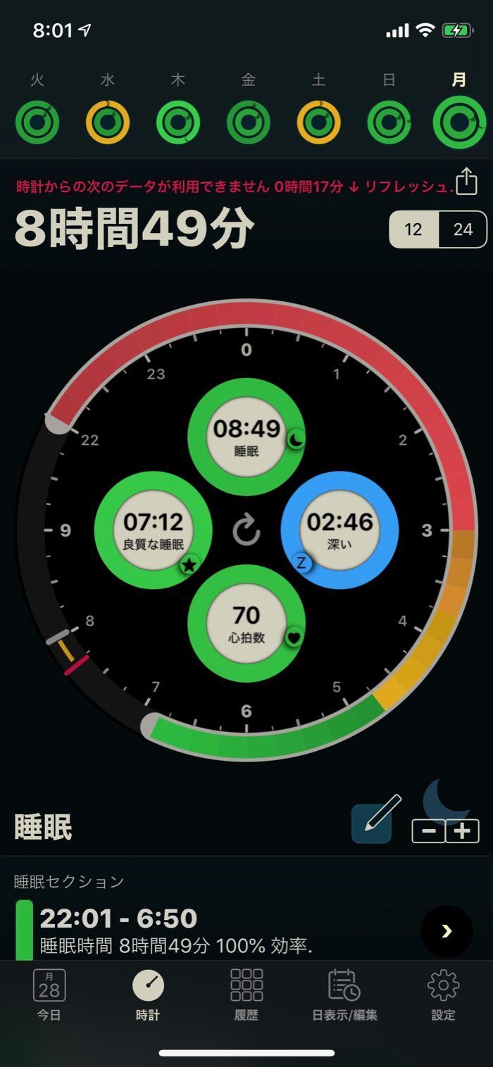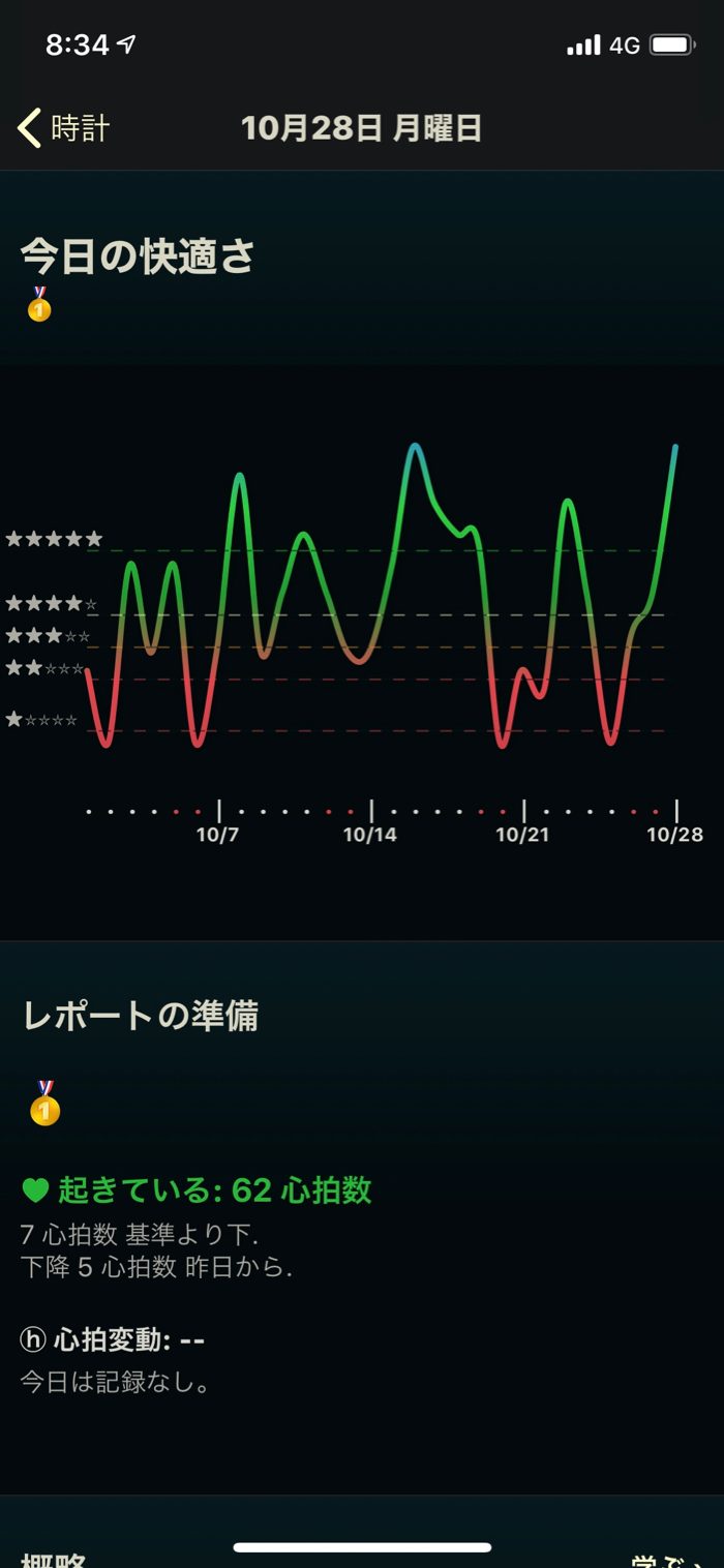▲ AutoSleepの分析の結果、睡眠の質もめちゃくちゃ良かった。