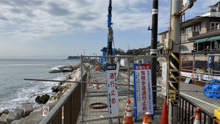 10日来ないうちに稲村ガ崎の台風被害の箇所の工事が大分進んでいた。