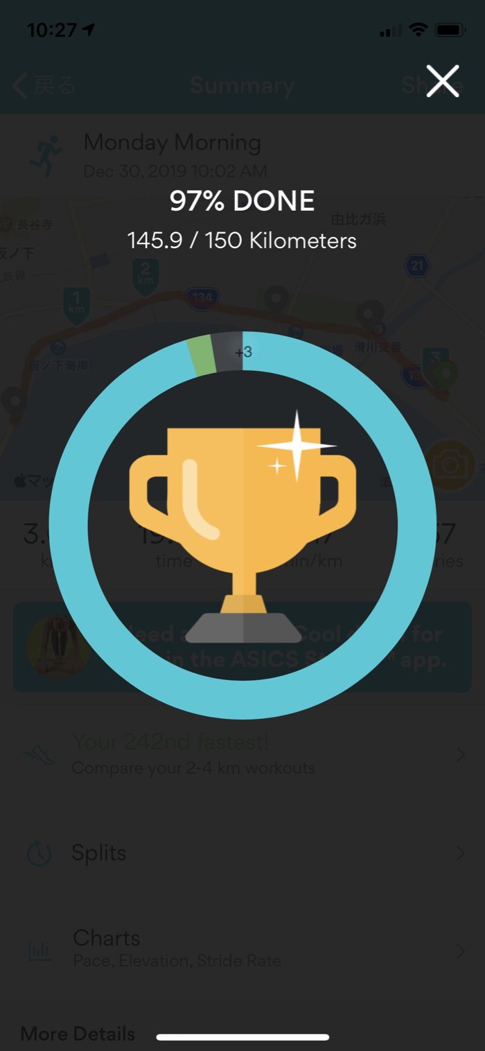明日4km走って150km達成の予定。