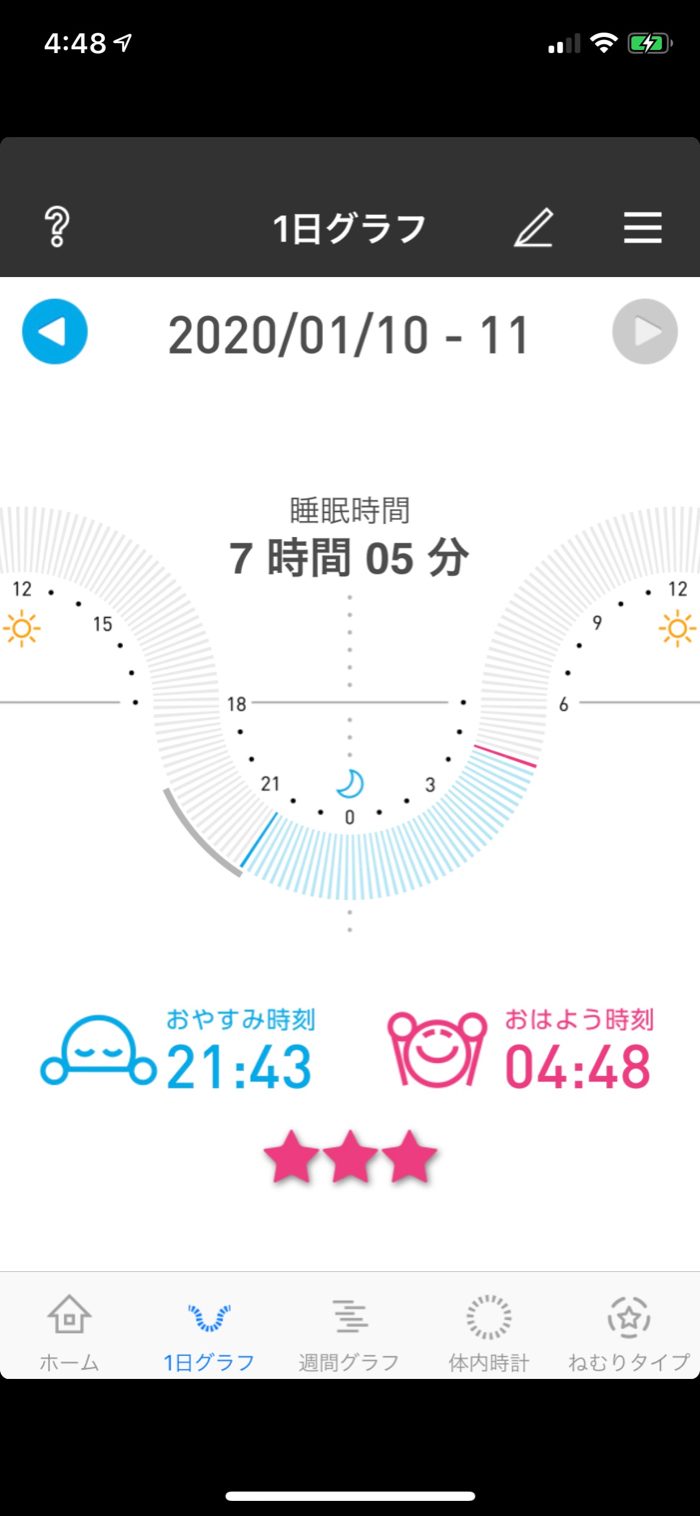 目覚ましなしで起きられているが、目覚めしをかけた方が時間まで安心して眠れて良いかも。