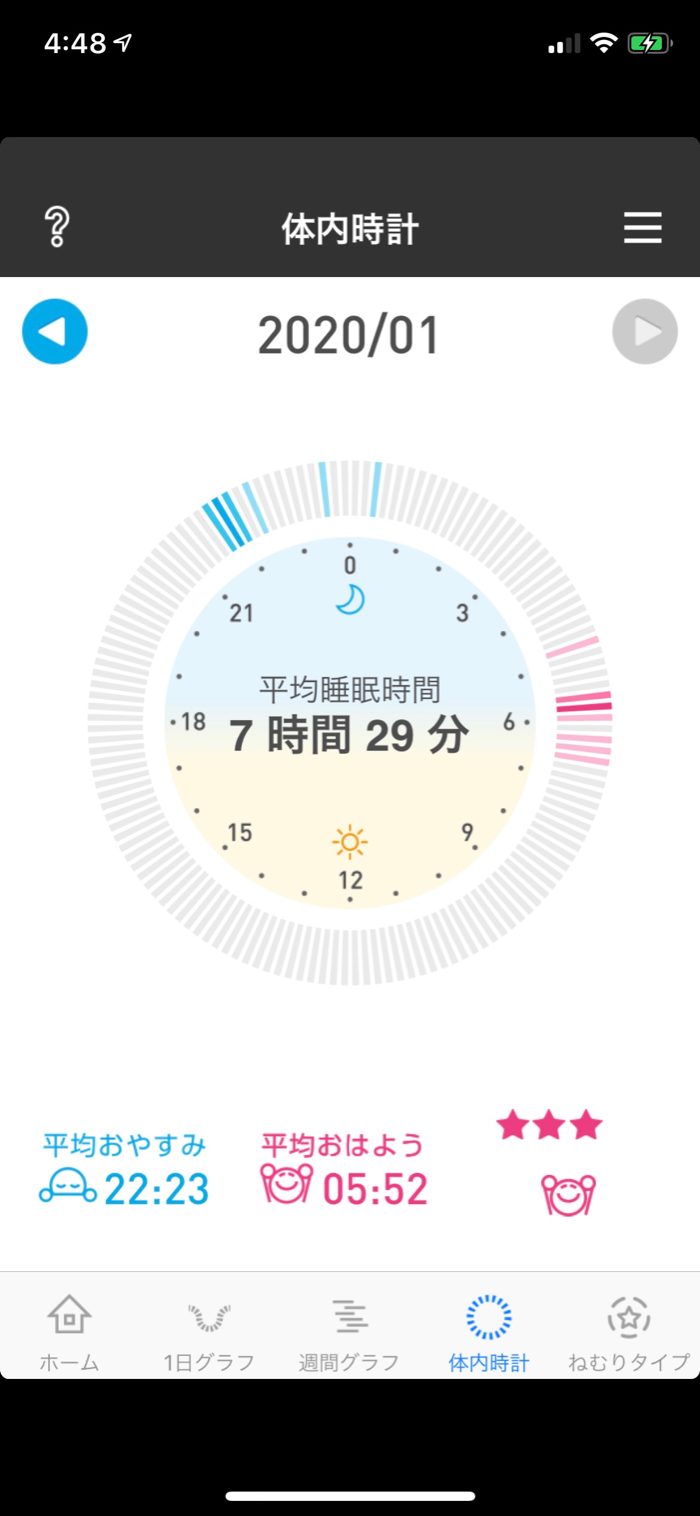 今月は月間平均7時間30分睡眠と、平均おやすみ時刻を22:15にすることが目標。