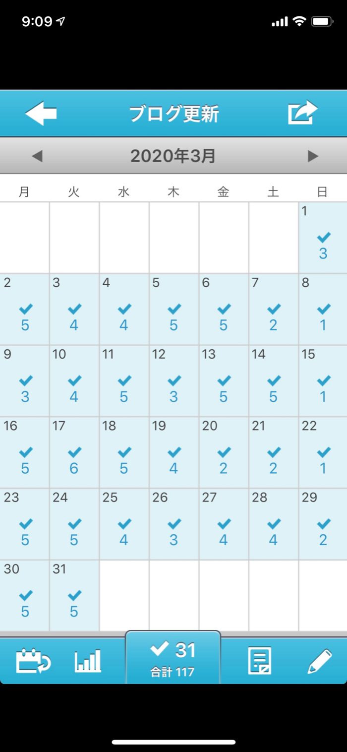 ▲ 3月のブログ更新記事数は117記事と過去最高となった。