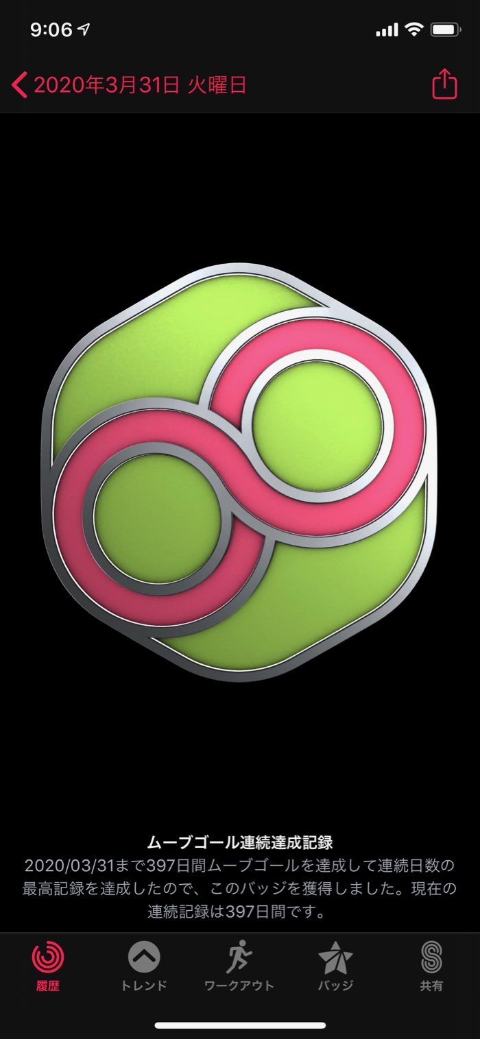 ▲ ムーブはこれで397日連続達成。