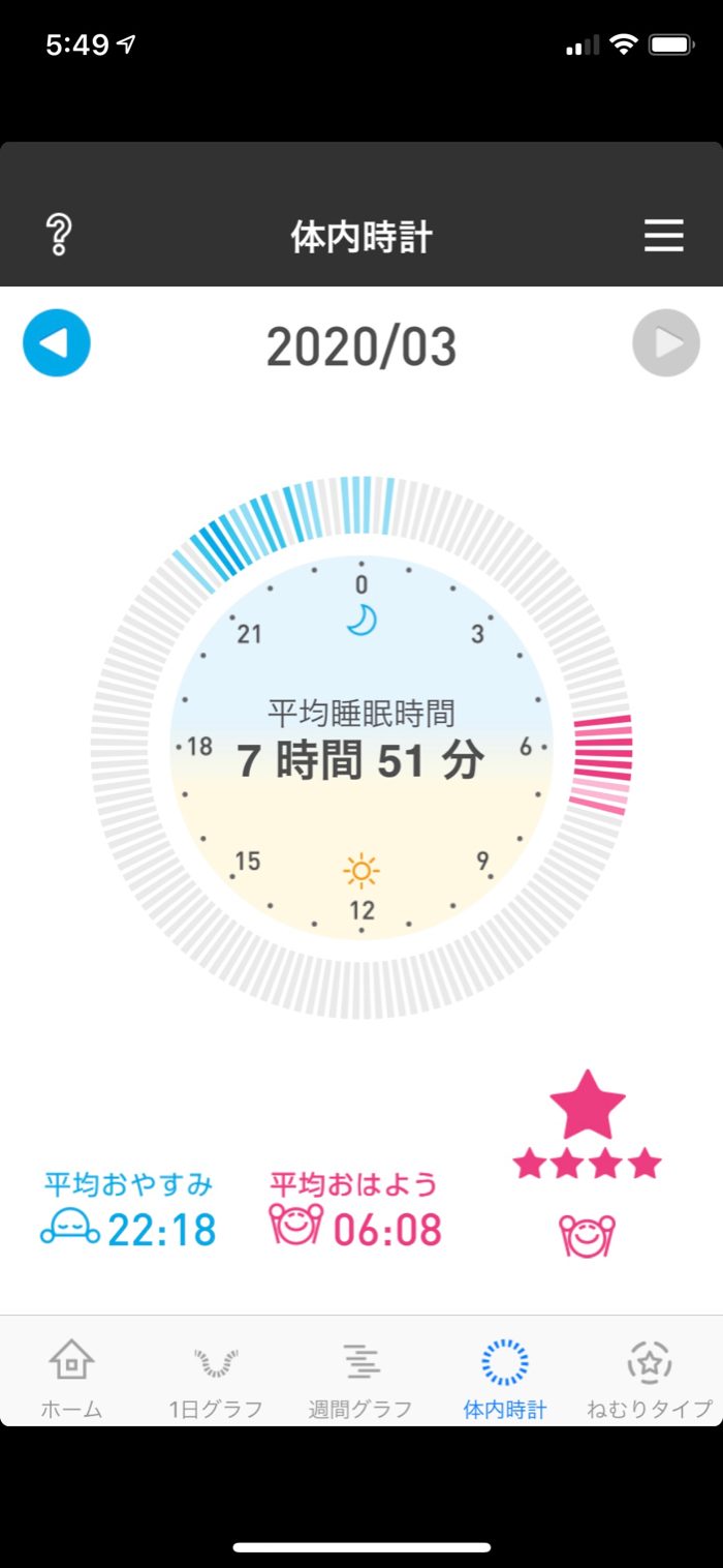 今月は月間平均7時間30分睡眠と、平均おやすみ時刻を22:15にすることが目標。