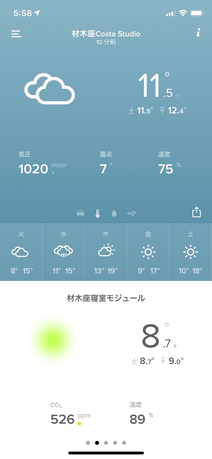 朝の寝室の室温は前日より2.9度低い8.7度。