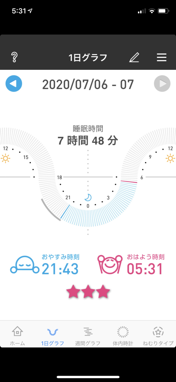▲ 良い感じに早寝早起き。