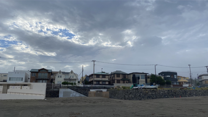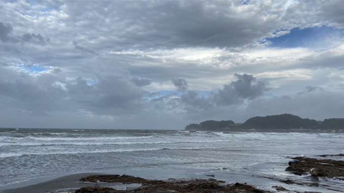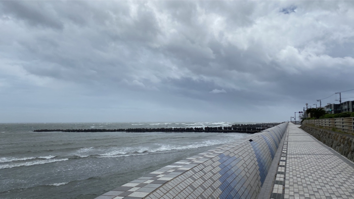爆風が海から陸に向けて吹きまくり。