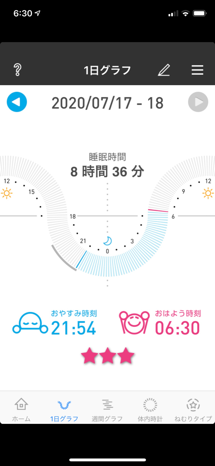 ▲ まあまあ良い感じの早寝早起き。
