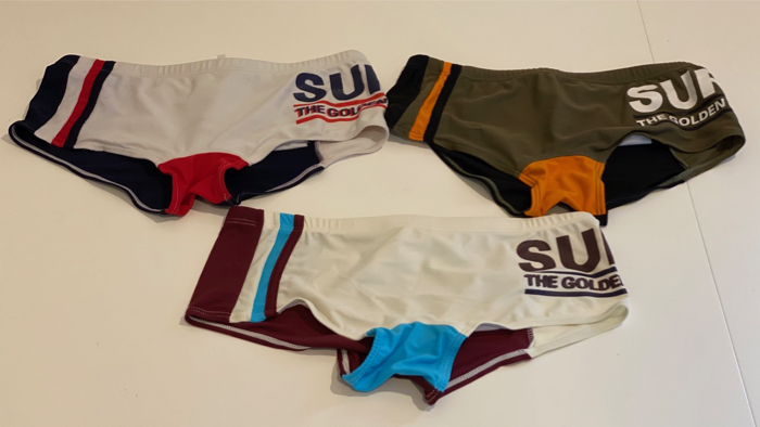 水着は下の真ん中のブルーのラインのが新しく届いたもの。