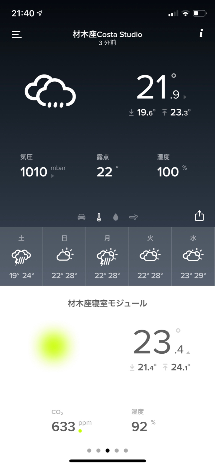 朝の寝室の気温は前日と変わらず21.7度。