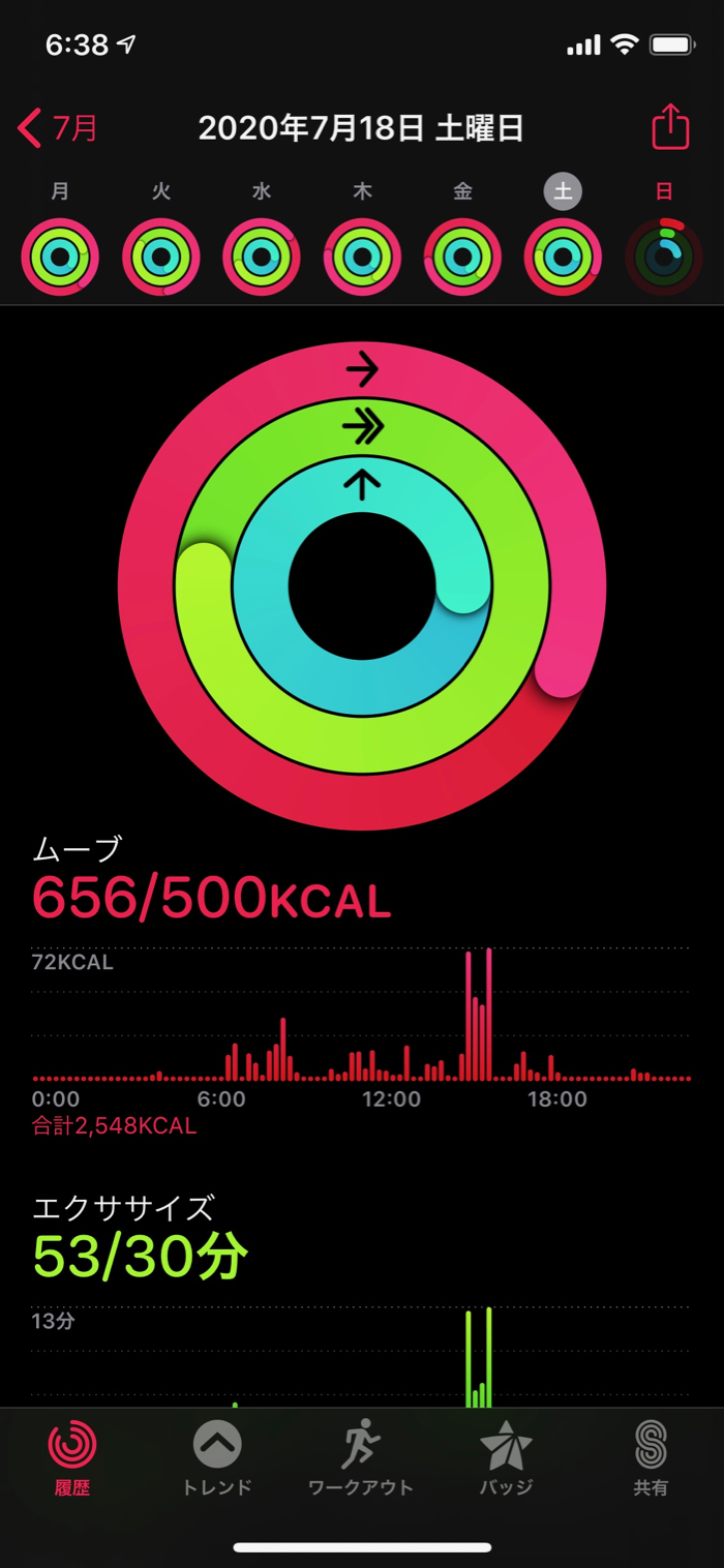 ▲ 一週間のワークアウト目標も1日早くクリア。