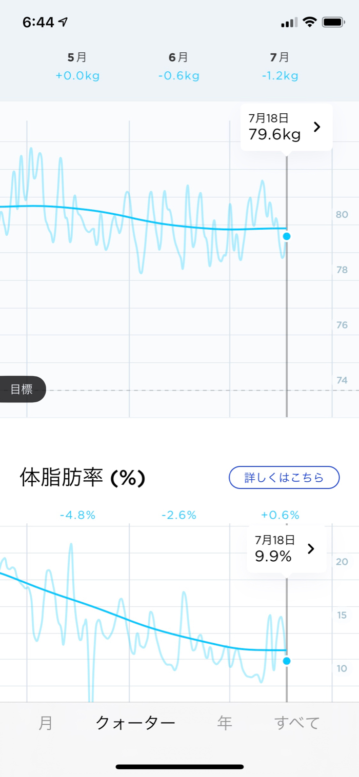 ▲ 会食で体重はアップしたけど、0.8kg増で抑えられたのは優秀。