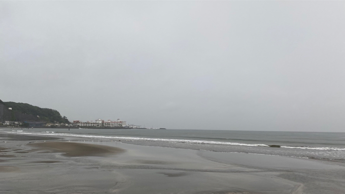 またまた雨降る朝の海