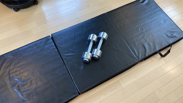 ▲ ダンベルスクワット 10kgで15回を3セット。