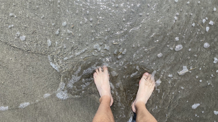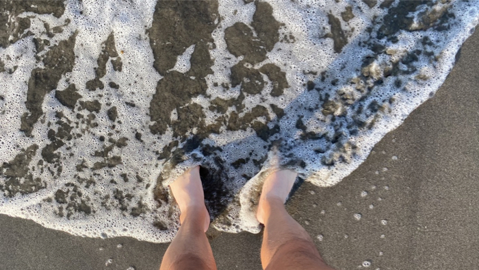 自分の肌の黒さと短パン姿の服装があまりにも場違いで笑う。