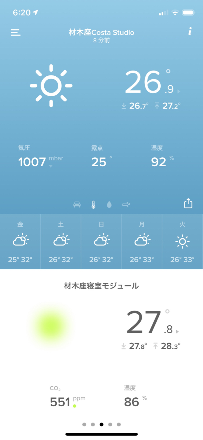 夜の室温はスクショ撮り忘れ。前夜は28.4度。