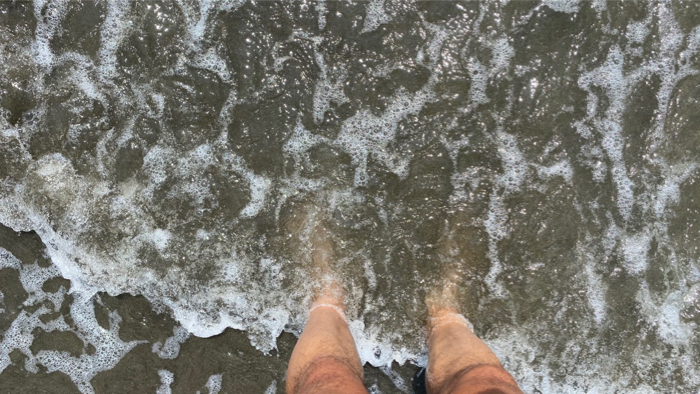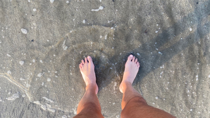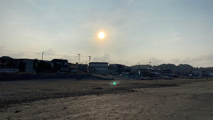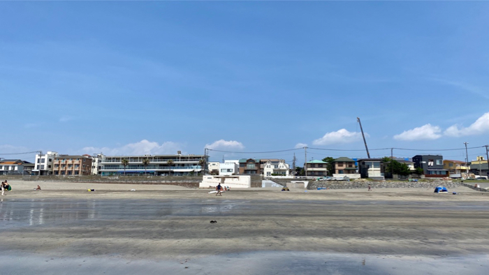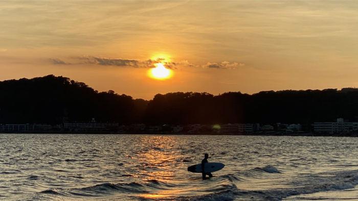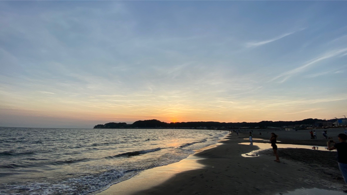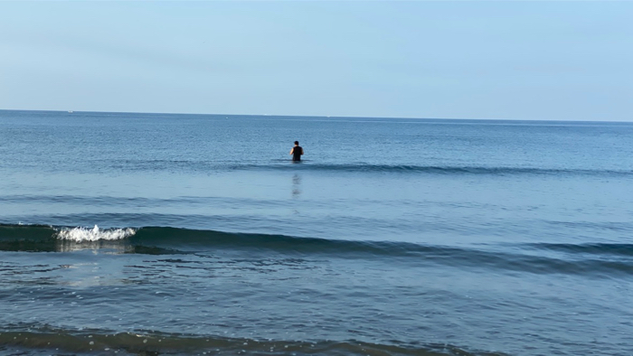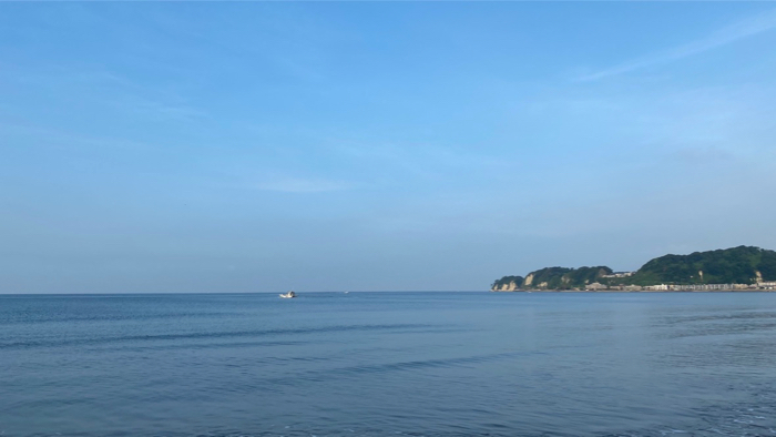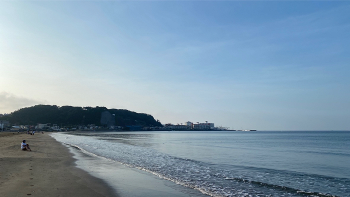 一人だけ早朝の海で泳いでいる人がいて気持ち良さそうだった。