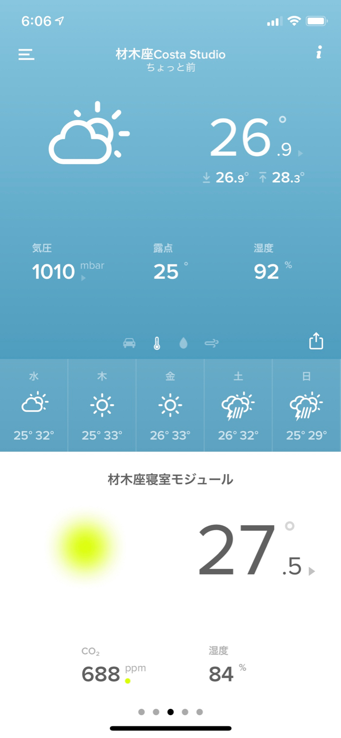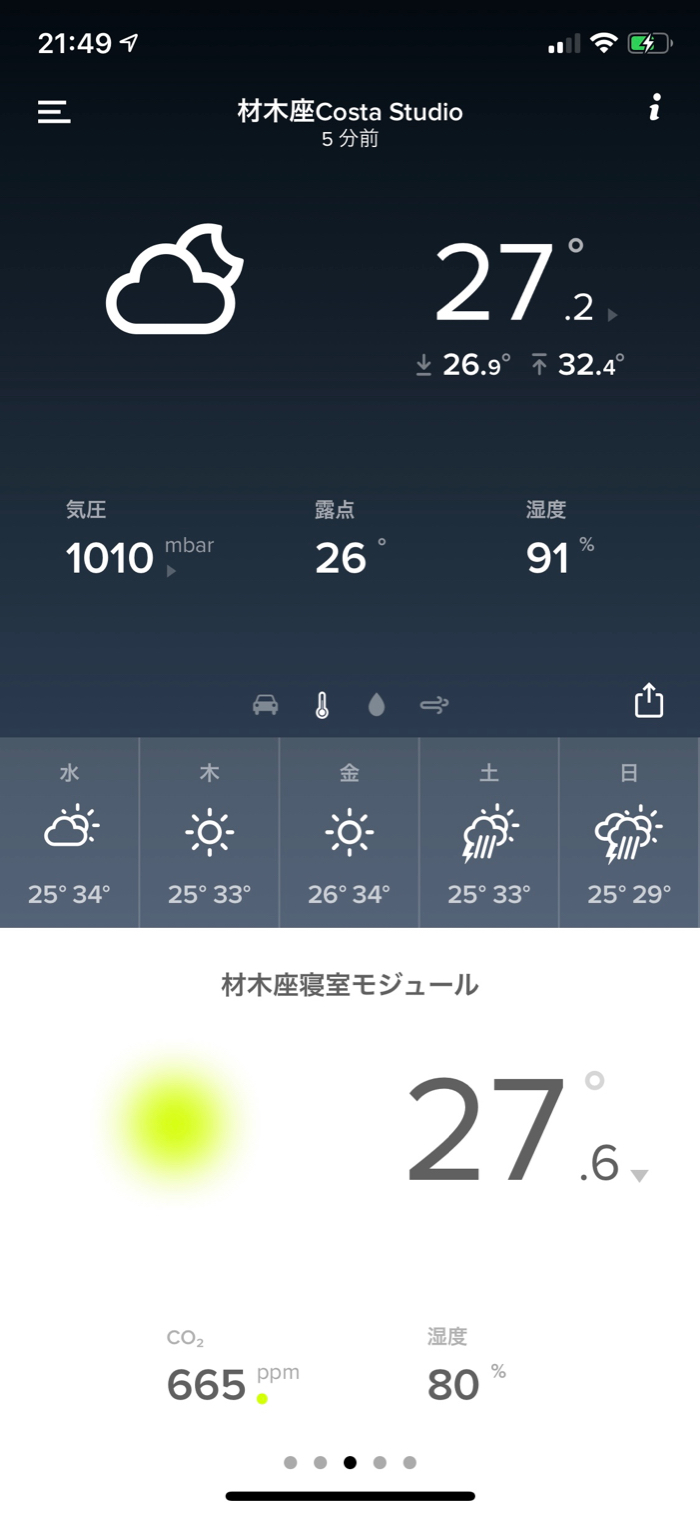 朝の寝室の室温は、前日より0.8度低い27.5度。