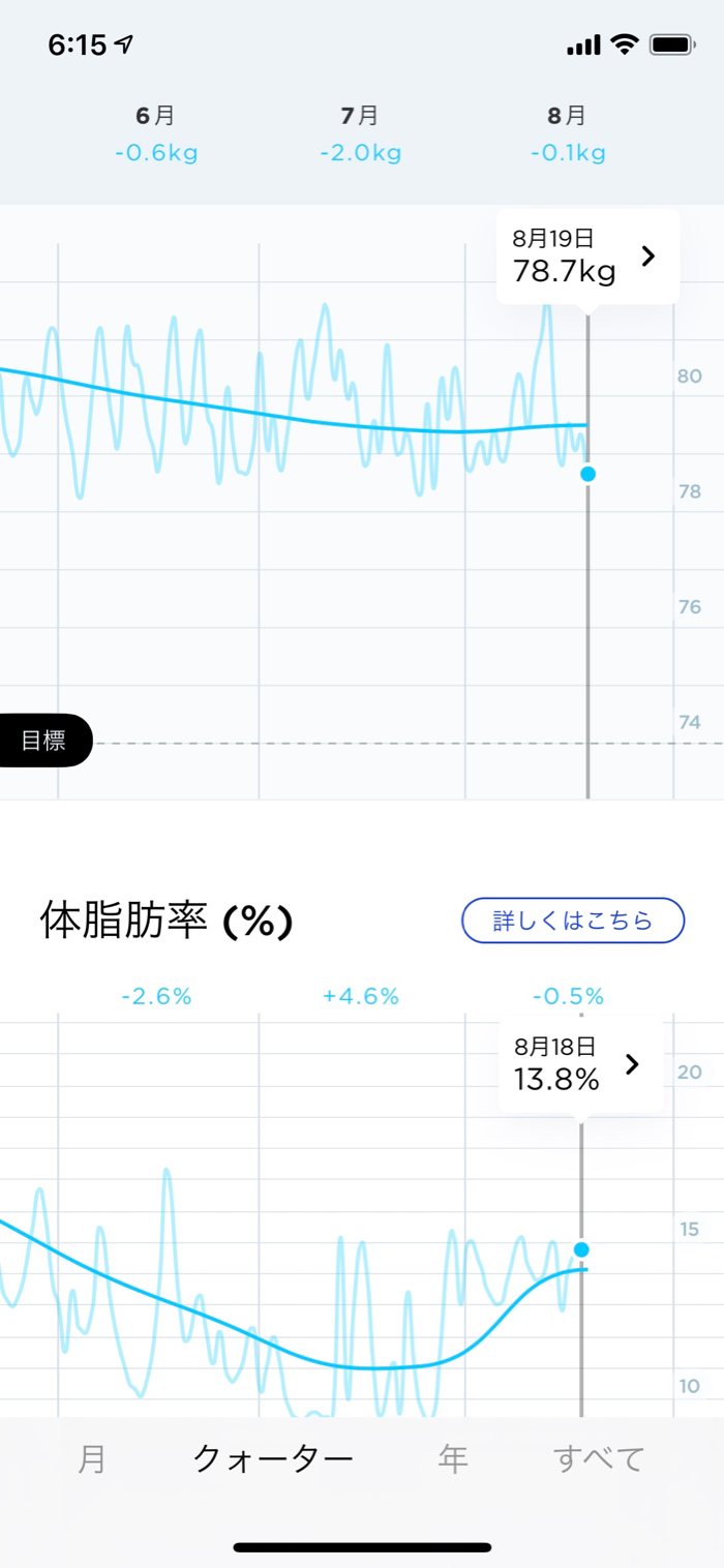 ▲ 体重は順調に減って78kg台に落ちてきた。