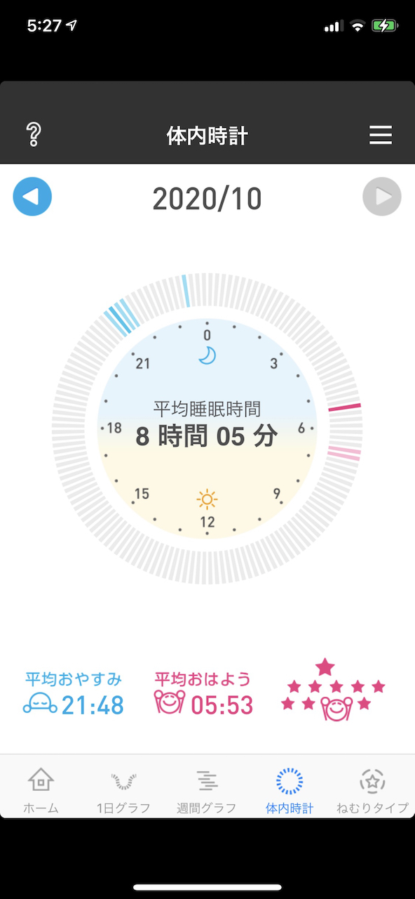 今月は月間平均7時間30分睡眠と、平均おやすみ時刻を22:15にすることが目標。