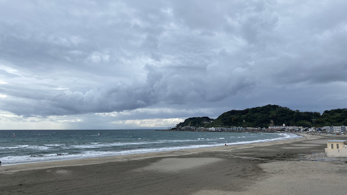 ▲ 晴れ間が見えてきた由比ヶ浜。