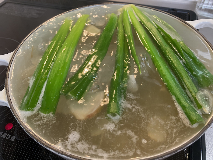 ▲ 夜は鶏胸肉スープの仕込み。