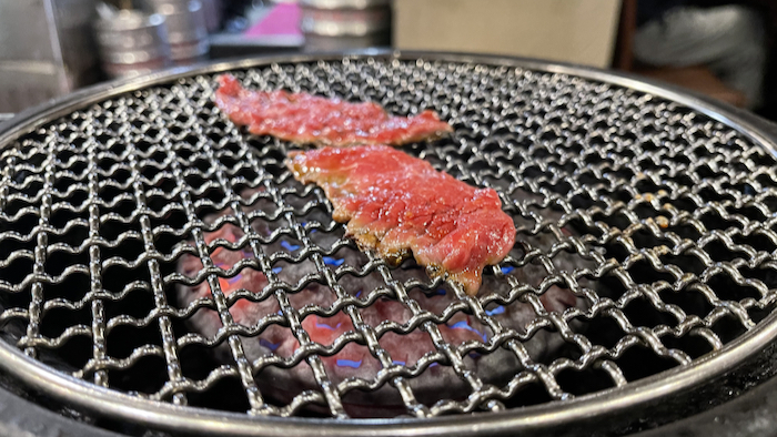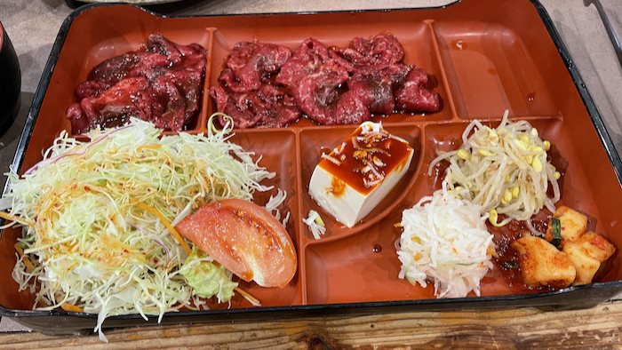 ▲ ランチは焼肉苑でロース定食の肉大盛り、ごはん小盛り。