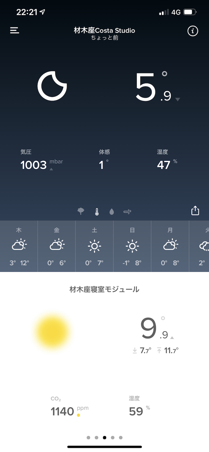 夜の寝室の気温は前夜より1.2度低い9.9度