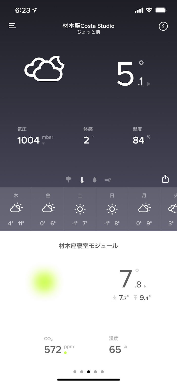 朝の寝室の室温は前日より1.9度低い7.8度。
