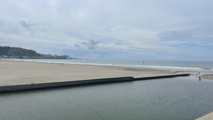 ▲ 沖合いには今日もオリンピックのセーリング競技の巡視船。