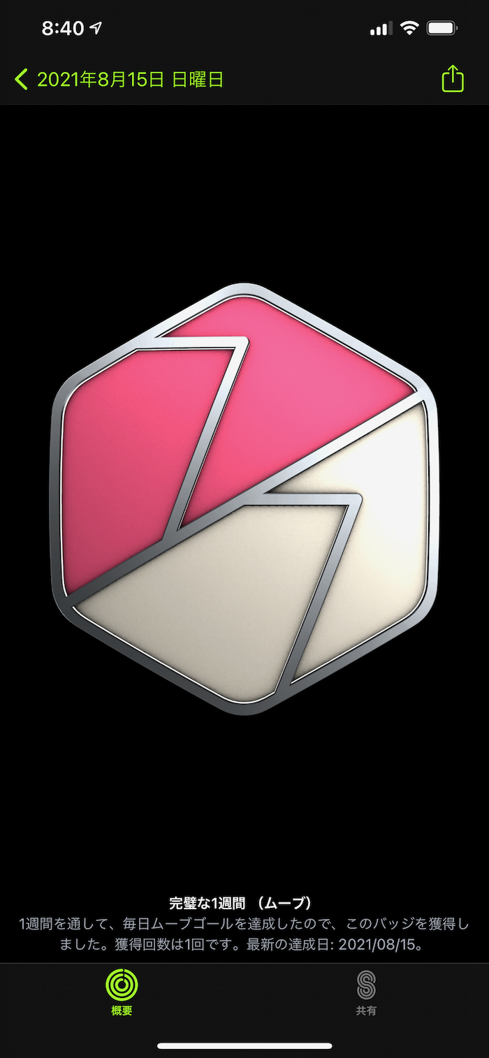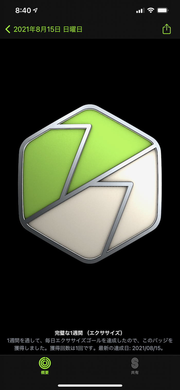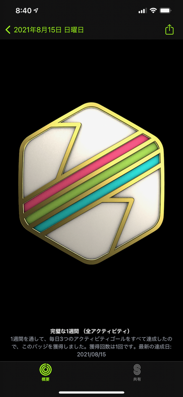 ▲ 今週も一週間のご褒美バッジをすべてゲット。