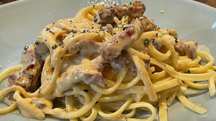 ▲ ダラダラするはずが、結局Facebookに長文の投稿をしたり、お昼にはカルボナーラをせっせと作ったり。