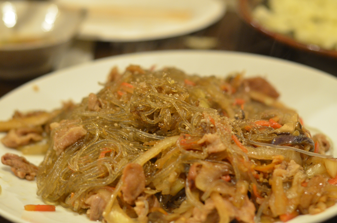 チャプチェ!どんどん粉モノが出てきます!細麺なんだけどすごくモチモチしていて、パキッとインパクトのある味付けが良い(^-^)。