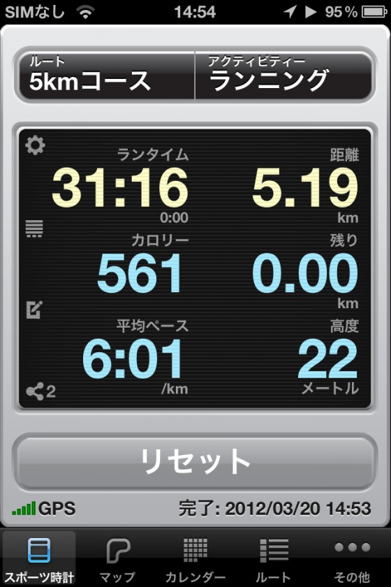 今日の走行距離/今週の走行距離/今月の走行距離/今年の走行距離:5.0キロ/15.2キロ/53.9キロ/419.4キロ