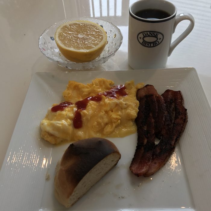 ▲ 気分転換に朝食をスクランブルエッグとベーコンにしてみた。