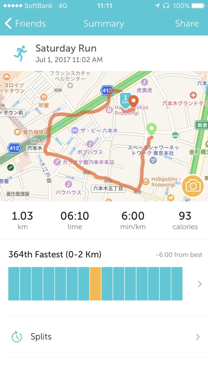 出発前に1kmラン。