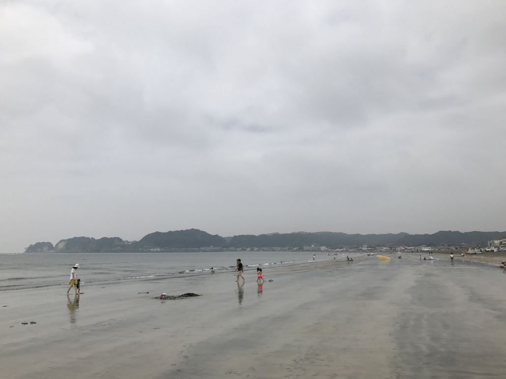 材木座海岸も、せっかくのお盆三連休なのに人影まばらで寂しい。